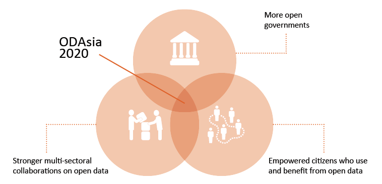 Back in 2015, a group of actors from countries in the region gathered together in Jakarta, Indonesia, to define what they would like to see in the open data movement by 2020.39The group identified three key desired outcomes that are listed and illustrated in the figure below: